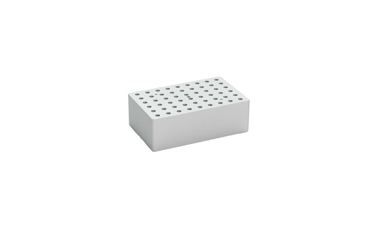Bloque metálico para 54 tubos de 0.2 ml (Ø agujero 6.4 mm profundidad 14 mm).