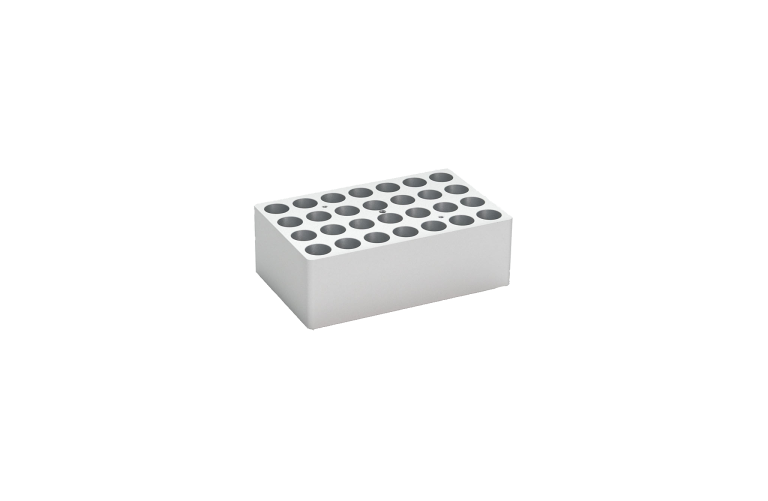 Bloque metálico para 28 tubos de 5/15 ml (Ø agujero 16.5 mm profundidad 48 mm).