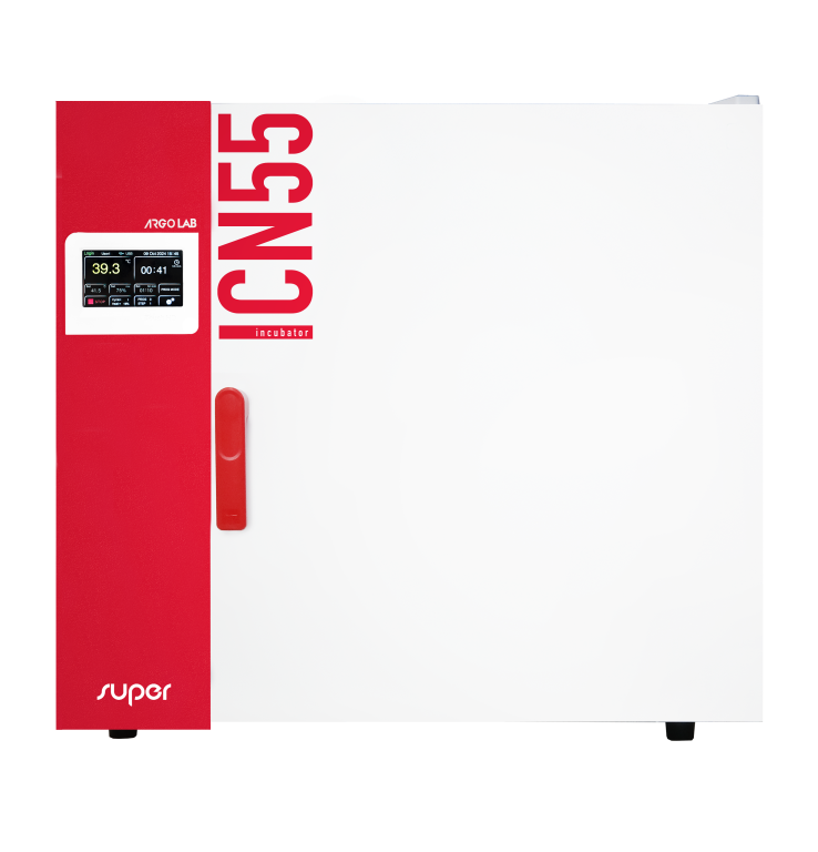 Incubadora de convección natural ICN55 SUPER de 55 litros rango de +5ºC T ambiente hasta 70ºC / 0.1ºC. Controlador digital con pantalla táctil con 8 programas x 8 pasos. Registro de temperatura ilimitado con puerto USB para lápiz de memoria. Seguridad 2.0 2 estantes incluidos. Certificado trazable a 37ºC