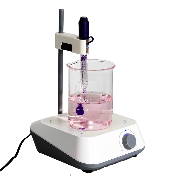 Agitador magnético ECOSTIR con soporte y alimentador.