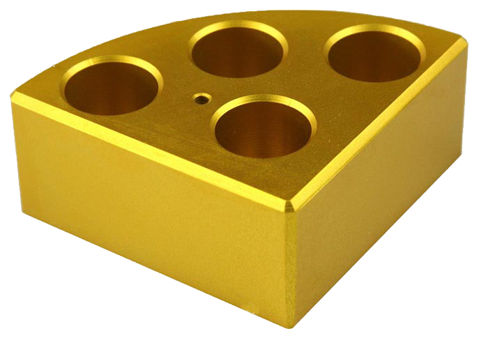 Bloque calefactor para tubos 16ml 4 posiciones diámetro 21.6mm fondo 31 7mm – dorado