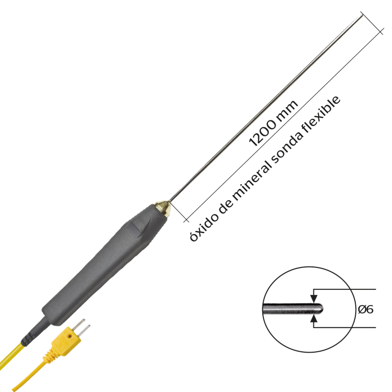 Sonda de temperatura termopar K INMERSIÓN oxído mineral 6×1200 mm -60 a 1100 ºC y 1.5 m de cable.