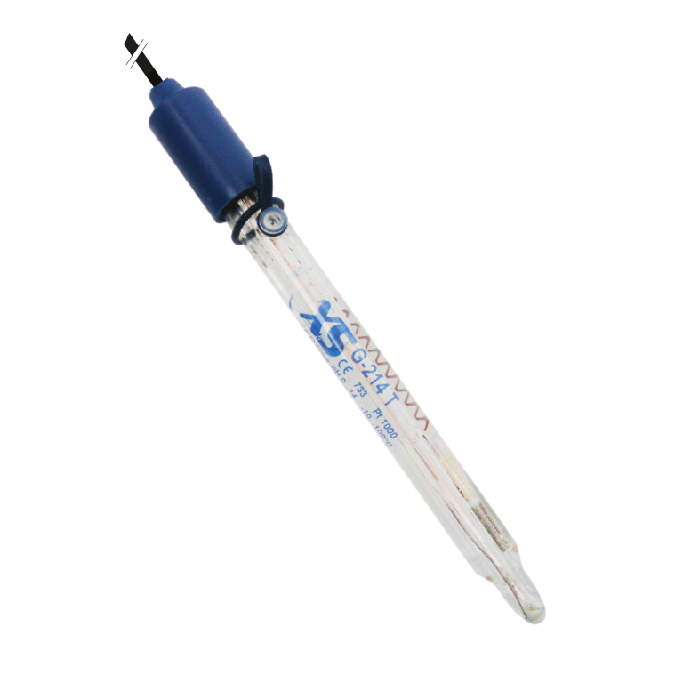 Electrodo de pH XS 214T para pH-metros tipo Crison/Hach. Rango pH 0…14 temp. -10…100ºC cuerpo vidrio. Electrolito KCl 3M. Con sensor de temperatura PT1000 integrada. Con cable BNC+banana 4mm. Para medidas aplicaciones generales