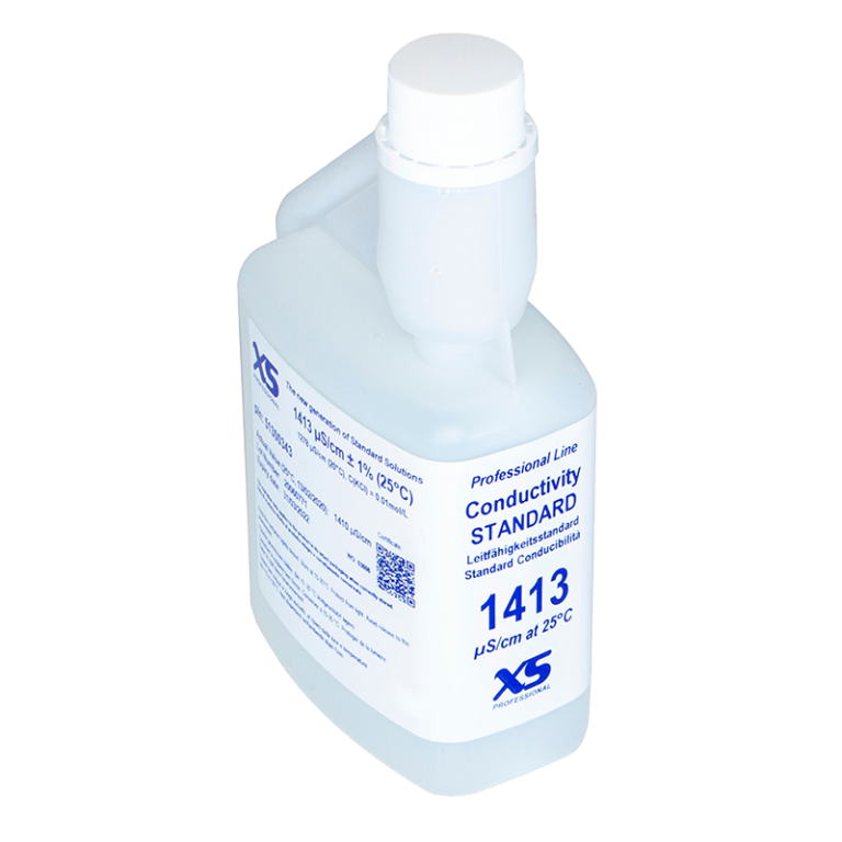 Disolución patrón de conductividad XS 1413 µS/cm a 25ºC ±1% 1×500 ml con vaso antiretorno para calibración. Con certificado DFM (ENAC).