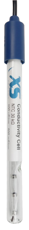 Célula de conductividad VPT10 cuerpo de vidiro y platino con sensor de temperatura integrado NTC30K de 2 polos K=10 (100 uS a 500 mS) 0 a 80ºC. Conector BNC/Cinch 1 m cable.