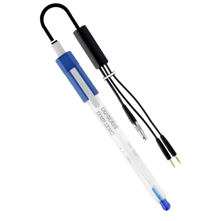 Electrodo de pH HAMILTON LIQ-GLASS TEMP LEMO para pH-metros tipo METROHM de vidrio. 0 a 14 pH -10 a 100ºC Pt1000. Conector LEMO+2 bananas Ø 2 mm.